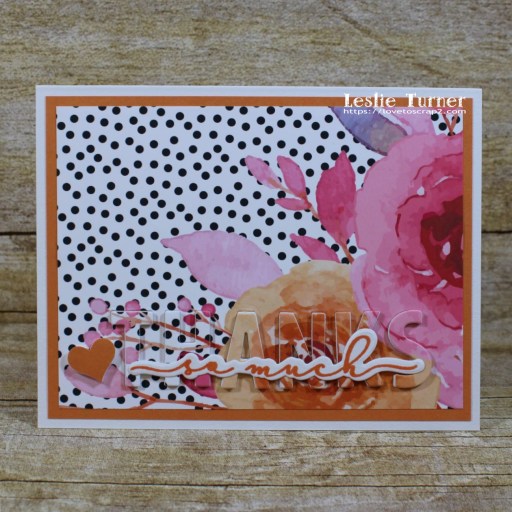 For the Tic Tac Toe Challenge this fortnight, we are to choose a column, row or diagonal, and use something from each image on our project. I chose the diagonal from top left down to bottom right, and used hearts, flowers and colors orange and yellow.