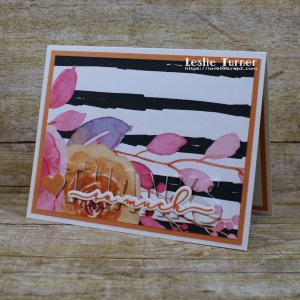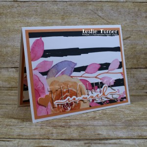 I cut standard A2 size landscape top-folding card bases from Neenah Classic Crest Solar White 110# cardstock. along with layers for each card cut from CutCardStock Pop-Tone 65# Orange Fizz cardstock and the Girl Boss Black and White Floral Digital Delilght Papers printed on 60# Hammermill copy paper. Using the Waffle Flower Bold Alpha Die Set, I washi-taped the THANKS letters together and die cut them into the bottom of each digital paper background. I die cut four more sets of letters from Neenah Classic Crest Solar White 110# cardstock for each card. I adhered the digital paper backgrounds to the orange layers and then adhered the panels to the card bases.