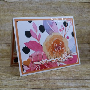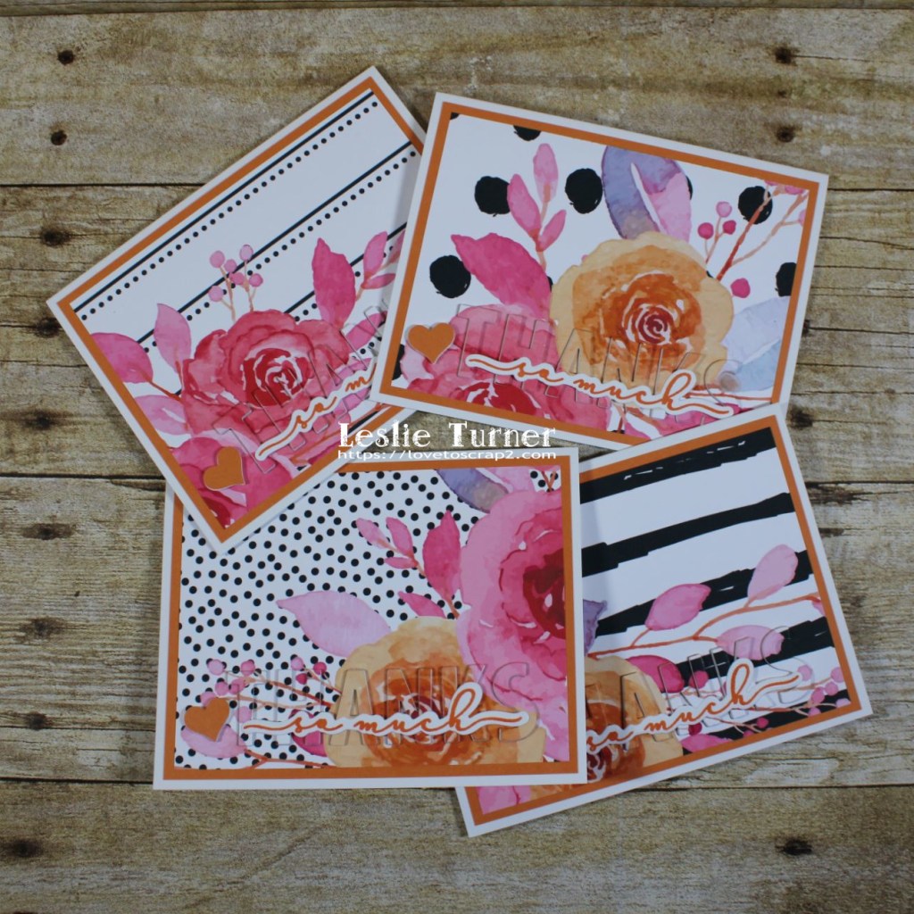 Hi friends! Another week has rolled around and I keep saying it’ll sure be Christmas before we know it! I just can’t believe how fast the time is flying by! Affiliate links are used in this post at no cost to you. I really appreciate your support! A new Tic Tac Toe challenge has started today over at The Outlawz Tuesday Color Challenge and our sponsor is Free Pretty Things For You so be sure to come on over and play! This is my last post for The Outlawz Tuesday Color Challenge, and I’d like to thank Laurian, Jacqui and the crew for having me along these last five months – I’ve had a blast but unfortunately I have so much on my plate right now that I really need to trim back. So I thought it only fitting to create a set of four thank you cards using the absolutely gorgeous Girl Boss Black and White Floral Digital Delilght Papers that were gifted to me for the two challenges this month. These cards feature what I always call the ‘phantom die cutting’ technique which is actually a raised inlaid die cut where typically a foam die cut is adhered into the negative space, then a second foam die cut (if desired) is adhered on top of that one, and then the background die cut is adhered on top of the second layer of foam. I’ve done it with one layer of foam, two layers of foam and multiple layers of cardstock, and it looks great any way it’s done. I used several layers of 110# cardstock for these and I love how they turned out!