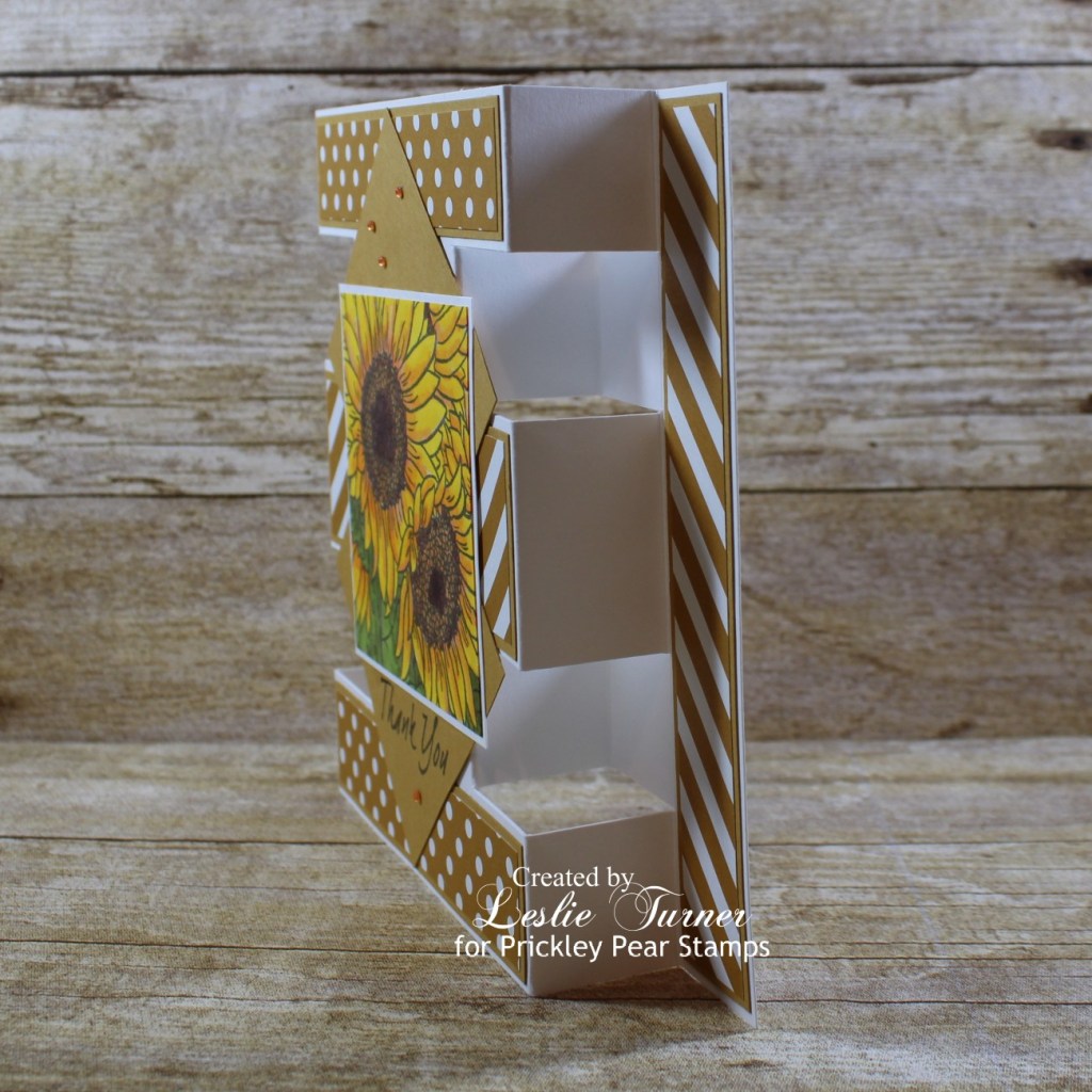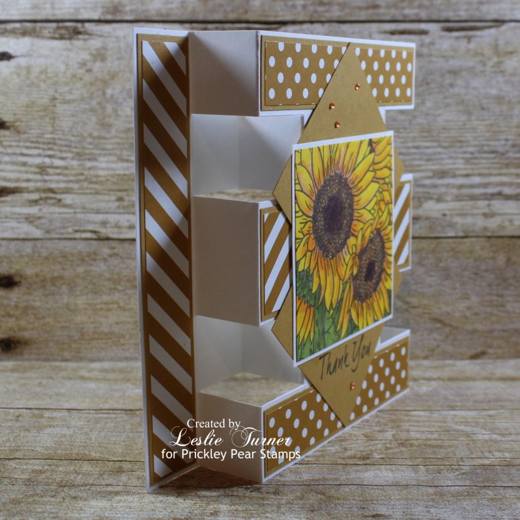 Hi everybody! How is your Thursday going? Great, I hope… not much longer till the weekend is here! Affiliate links are used in this post at no cost to you. I really appreciate your support! I’ve popped in to share one of several samples I created for the Prickley Pear Stamps Spring 2021 Release! You won’t believe the gorgeous selection of sketched florals, adorable praying Tess, and even a couple sets for the guys, so be sure to check them out and stay tuned for more pretties! You know me and fun folds, and I saw another great one in a recent Splitcoast Stampers newsletter that I’m sure I’ll be making again and again! The tutorial is HERE if you’re interested. This one is called a tower fold and I’ve used the stunning Sketched Florals – Sunflowers stamp set which I think looks amazing on this thank you card!