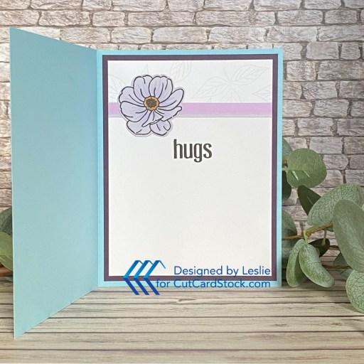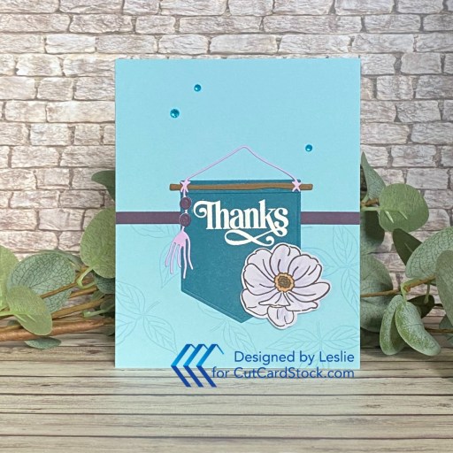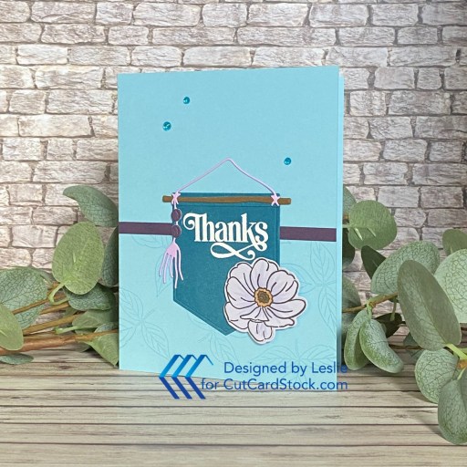 I cut the card base and flaps from CutCardStock Lessebo Blossom Pink cardstock along with layering panels from coordinating prints in the Melissa Frances 5th Avenue 6×6 paper pad and Neenah Classic Crest Solar White cardstock. I used stamps from the Stampin’ Up Hand-Penned Petals and Charming Sentiments stamp sets along with the coordinating dies. These images and sentiments were stamped in Versafine Onyx Black ink, Catherine Poole Mint To Be and Pixie Dust inks, and Memento Angel Pink and Bamboo Leaves inks. I added a little bow made from Keep It Simple Back To Basics Jade Ribbon, tied with my little wooden bow maker.