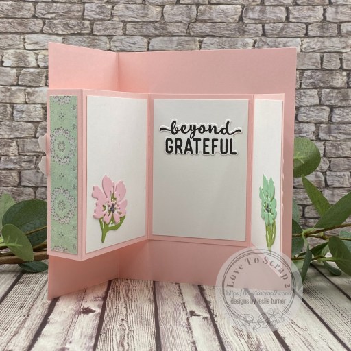 I embellished all the panels with either stamped or die cut florals. Totally LOVE how this turned out! It’s a fun one that you know you need to try! ;)