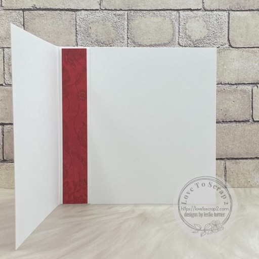 I added a vertical layered embellishing strip to the inside of the card, leaving the rest of flap blank for plenty of room to write a custom message.