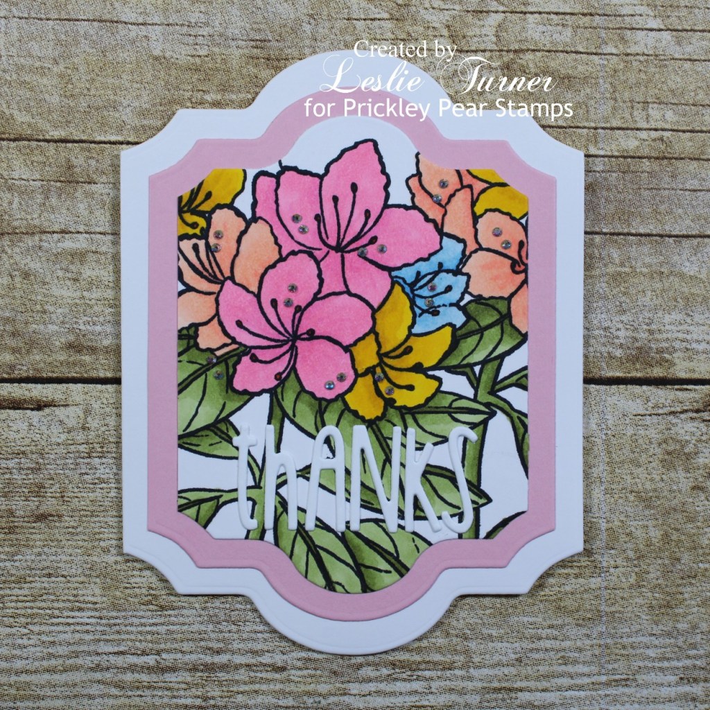 Hi everybody! Hope you are having a fabulous week and enjoying some wonderful Spring weather! It couldn’t be any more beautiful here than it has been for the past several weeks! In fact, I almost feel guilty for spending time in my studio, lol! Affiliate links are used in this post at no cost to you. I really appreciate your support! I’ve popped in this morning to share another sample that I created for the Prickley Pear Stamps Spring 2021 Release! I used the stunning Sketched Florals – Azalea stamp set for this pretty shaped thank you card. I absolutely love shaped cards and this is one of my favorites!