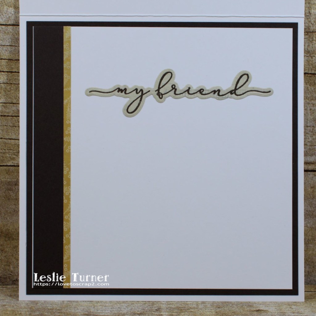 I cut the inside panels from Neenah Classic Crest 80# Solar White cardstock, embellished them with matching strips of the digital paper and a narrow orange cardstock strip, and layered the panels on orange cardstock. Since these are note cards, I left the inside panels blank to write a custom message in each.