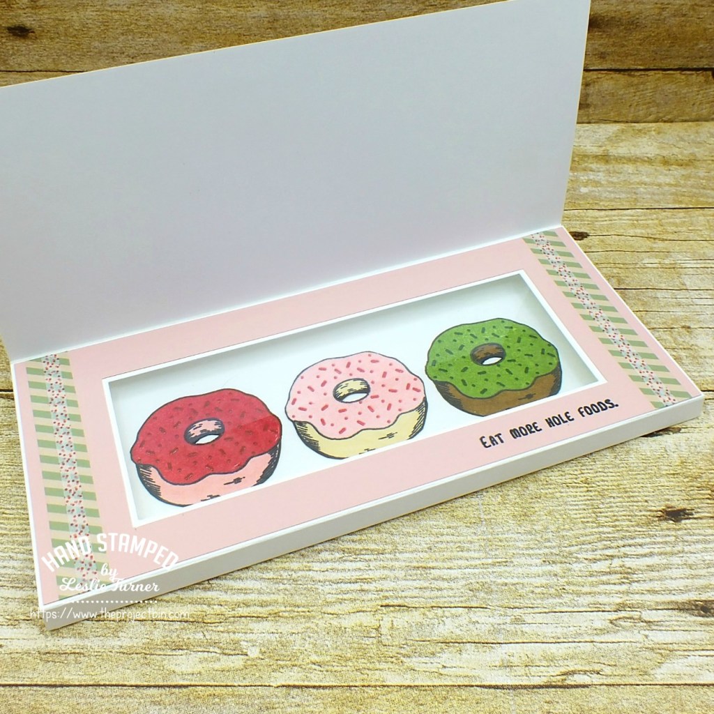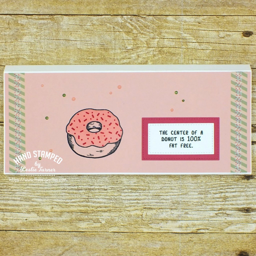 I stamped the sentiment in the center of the aperture in green ink and the cake in pink ink, and then added lines of Crystal Drops to the cake and a few random dots to the background.