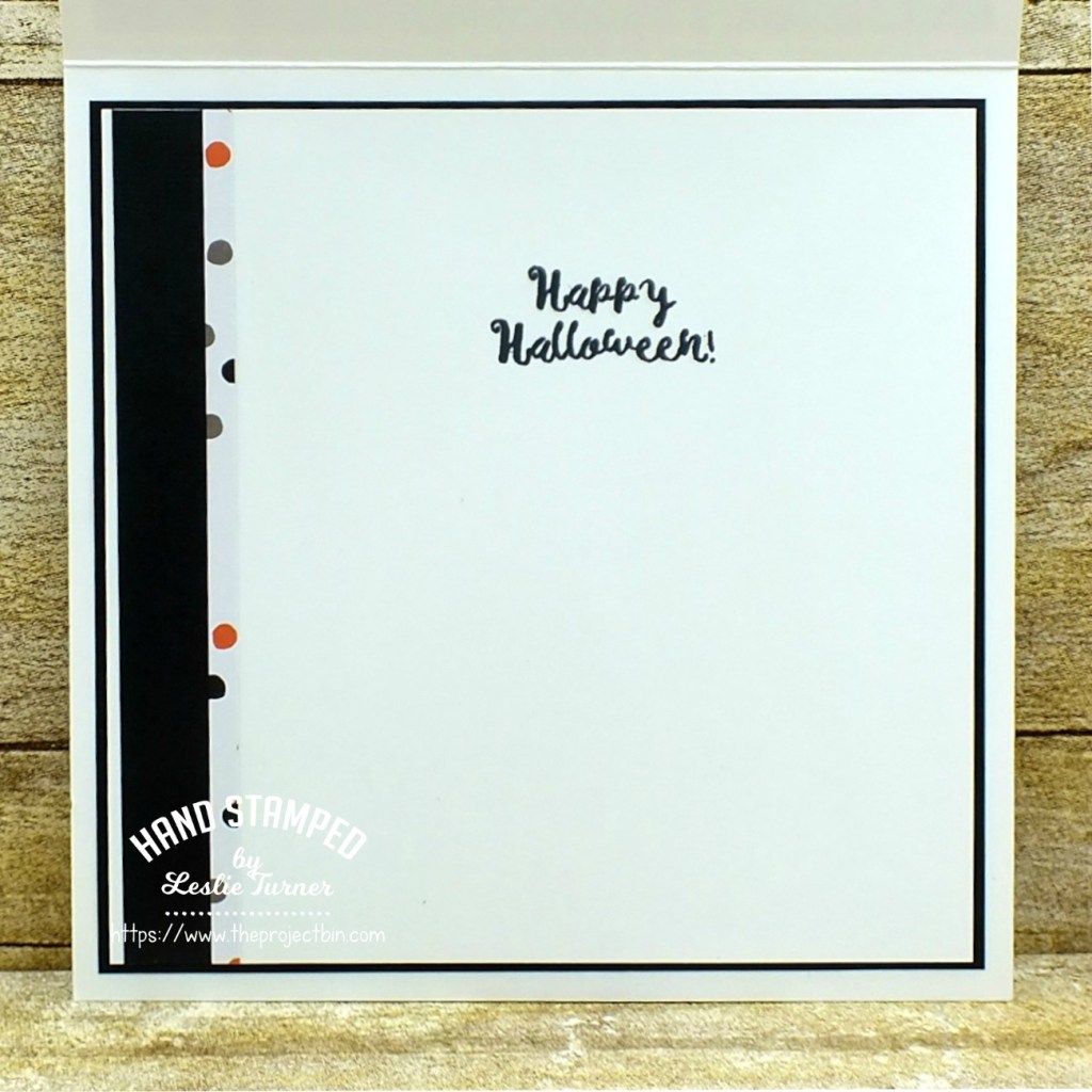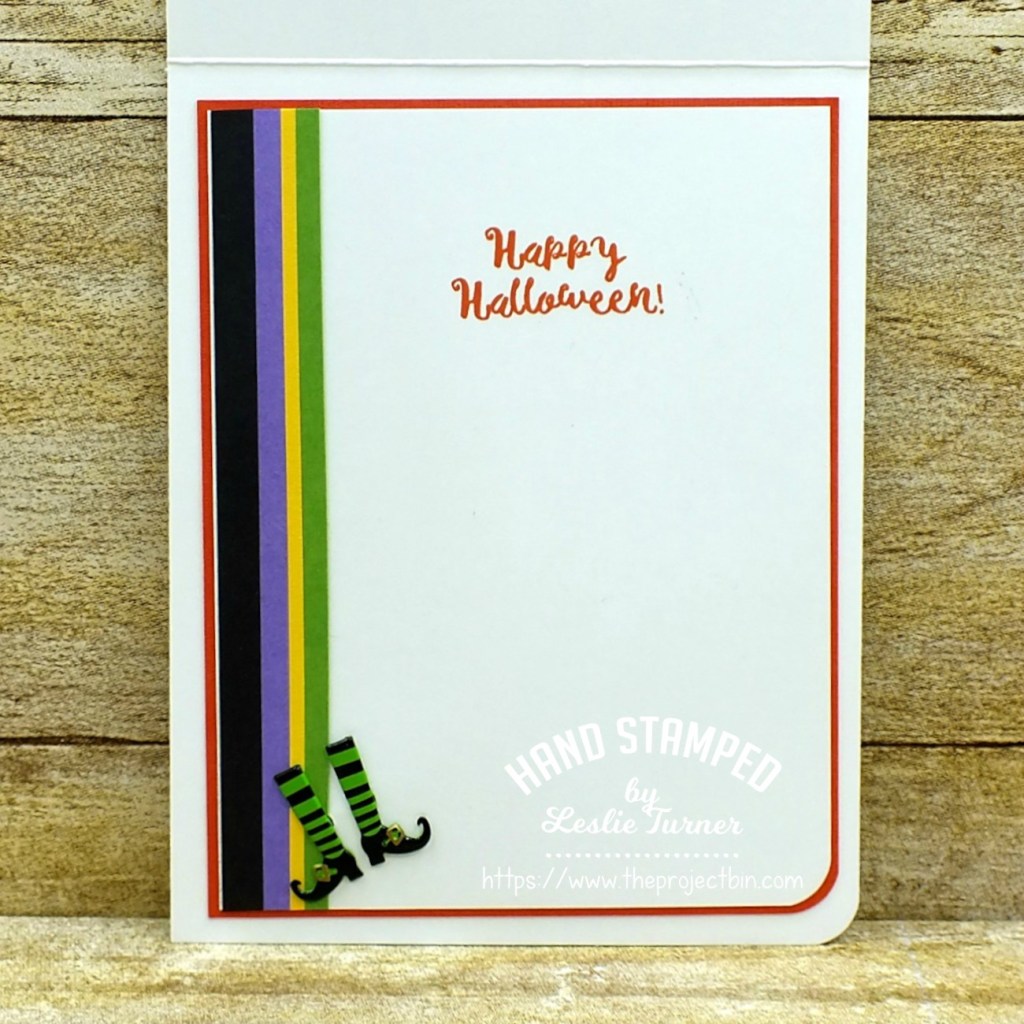I created a standard A2 top-folding card base and punched a 2-1/4″ circular aperture in the bottom right corner. I cut a thin frame from green cardstock using the 2-1/4″ circle punch along with a 2-1/2″ circle punch, and adhered it around the aperture.