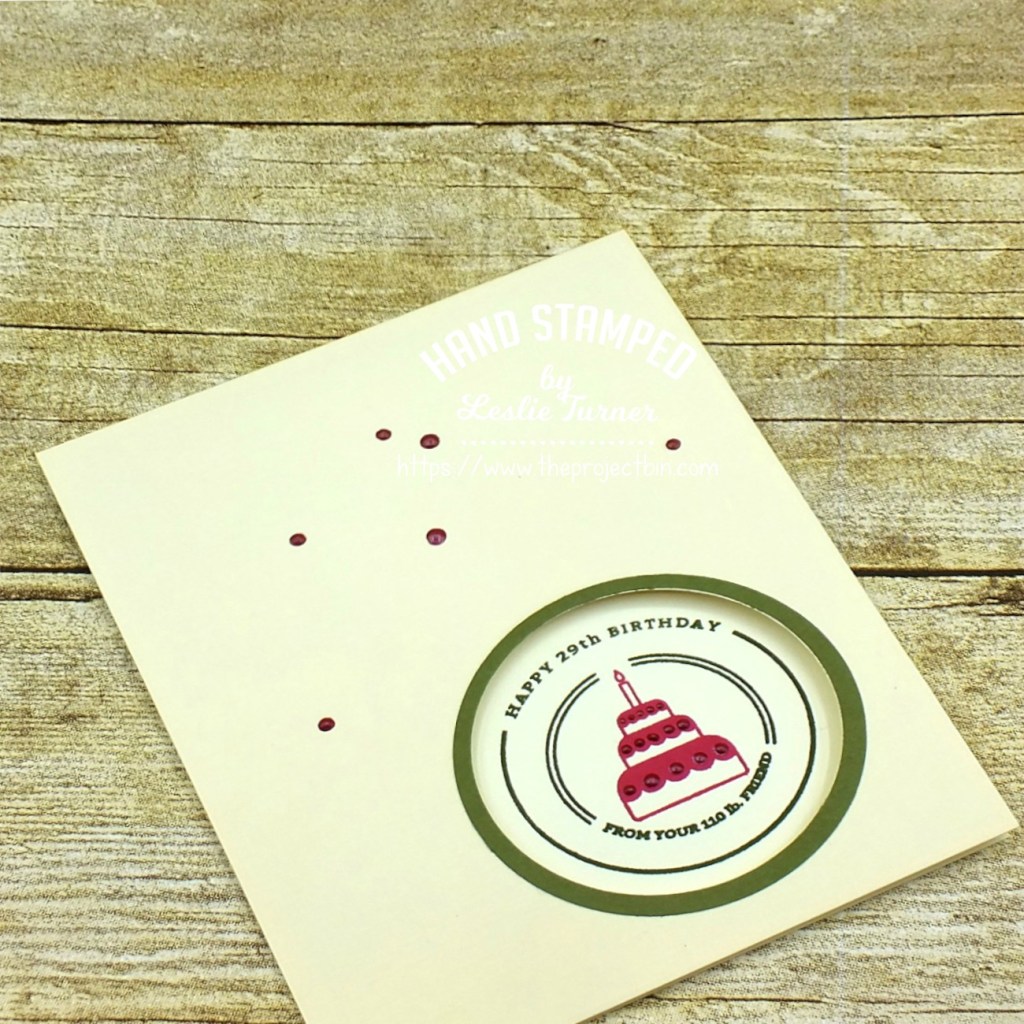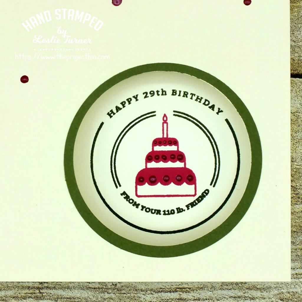 Hello, everyone! I’ve popped in again today to share another DT inspiration project for The Project Bin! I used the Born Yesterday stamp set to create a clean and simple birthday card with a round aperture, similar to the one I created last month with the acetate window but with a different sentiment and no acetate this time. This sentiment cracks me up and I can SO identify, lol!