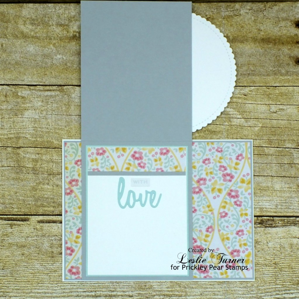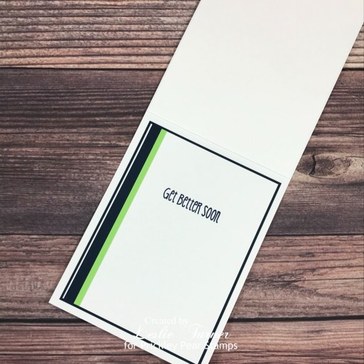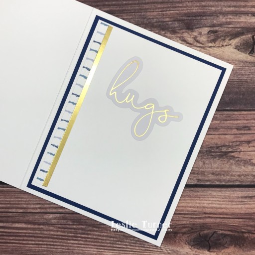 Here’s a shot of the back. I stamped a sentiment from The Cat’s Pajamas Simply Stacked Sentiments stamp set in Memento Rich Cocoa ink. Easy peasy and sure packs a punch!