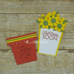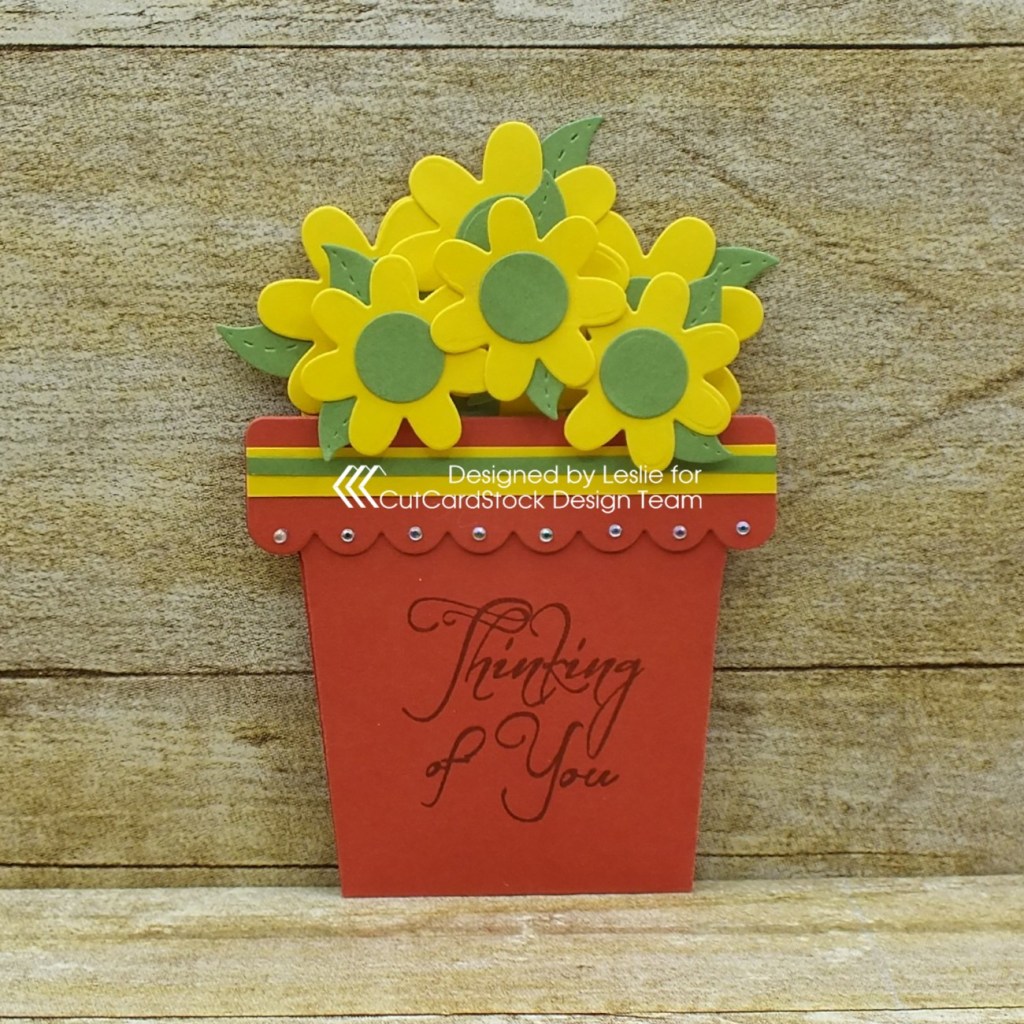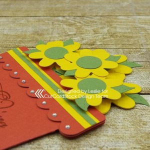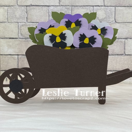 Using the Wheelbarrow Box Card cut file from Cyndy G SVG, I cut all the pieces from CutCardStock Pop Tone Hot Fudge, Pop Tone Black Licorice, Pop Tone Grapesicle, Pop Tone Lemon Drop, Pop Tone Sweet Tooth, Pop Tone Grape Jelly and Pop Tone Jellybean Green cardstock. In looking back, I wish I had used a woodgrain stamp on the background. I will definitely do that the next time I use this cut file.