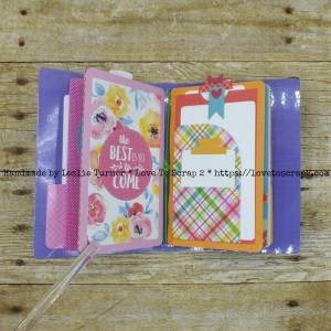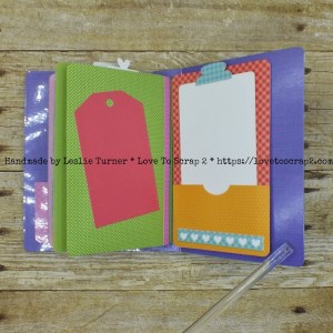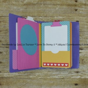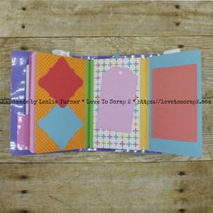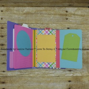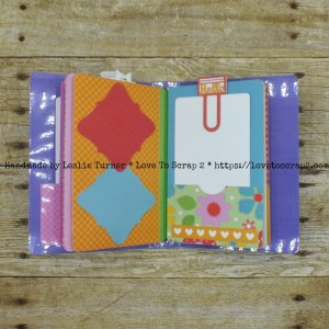 Here’s a huge shout-out to Doodlebug Design for making the most awesome 6×6 patterned paper EVER – all of the patterned papers are from various Rainbow Petite Prints paper pads plus another one of theirs that I’ve had in my stash for many years. I used Neenah Classic Crest Solar White cardstock for all 13 of the white tags slid into the pockets. There is a pocket inside the front cover, and there are three tri-fold inserts that each contain four pockets each with white tags and little doo-dad pulls at the top of each one. And here’s another huge shout-out to STAMPlorations for making some pretty awesome dies in their CUTplorations line that I used for die cuts on a number of the pages for photos and journaling. I used a Cottage Cutz die to create some double-stitched oval die cuts on a few of the pages as well (these are some more of my favorites). The cover is laminated and has an elastic cord to hold it closed. This was definitely a labor of love and I have plans to make a few more.