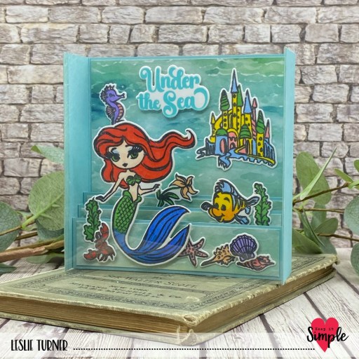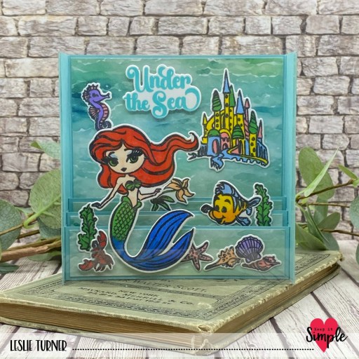 Hey everybody, I hope you’re having a great day! I’ve popped in this morning with a Keep It Simple DT inspiration project created with papers, stamps and dies from our new Once Upon A Time: Ariel Collection. This collection just released last week and if you’re a fan of fairytales and princesses, you are in for a real treat. I used my own open box card design to create an aquarium card, and I totally love how it turned out. I’ve made quite a few open box cards over the years – even a fairly large one for another design team project a couple years ago – and it’s super simple to make. My Freebies page is currently unavailable but drop me a comment on this post if you’d like me to email you my instructions.