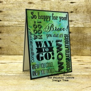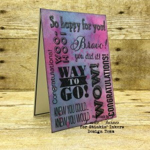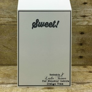 I die cut the inside panel from Neenah Classic Crest 80# Solar White cardstock and adhered a strip of one additional coordinating paper from the Royal 12×12 Collection Pack across the bottom. I stamped a sentiment from the Congratulations sentiment stamp set in Memento Paris Dusk ink along with a tiny heart from the Get Well sentiment stamp set in Catherine Pooler Flirty Fuchsia ink.