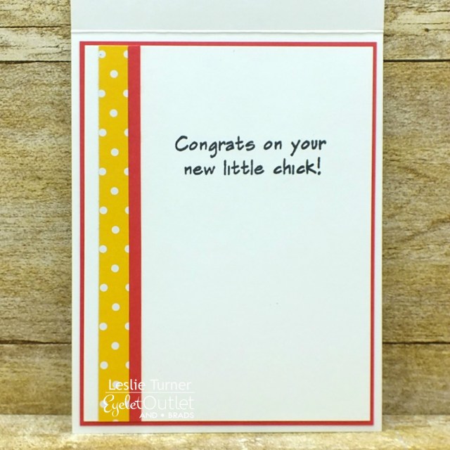 I cut the inside panel from Neenah Classic Crest Solar White cardstock and embellished it with leftover strips of yellow dotted and red cardstock used on the front, stamped the sentiment in black ink, and layered the panel on the red cardstock.