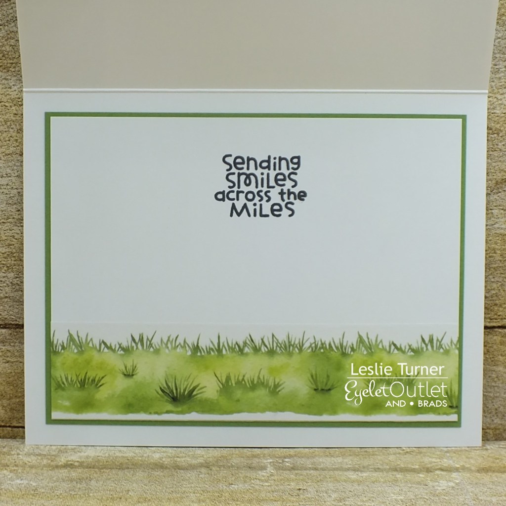 I cut the inside panel from Neenah Classic Crest Solar White cardstock and embellished it with a strip of the grass washi tape, stamped the sentiment in black ink and layered the panel on green cardstock.
