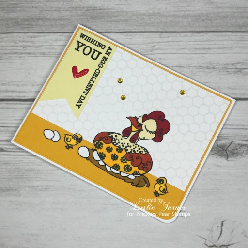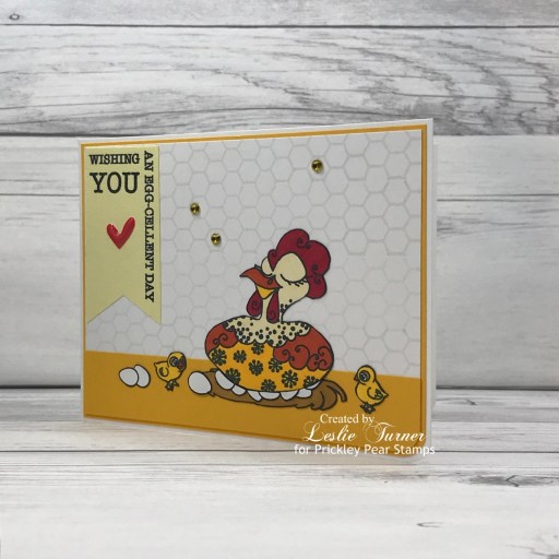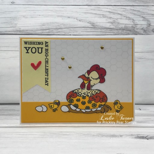 Hey everybody, Happy Thursday! I hope your week is going without incident! We had a sad little hiccup here with a very pregnant female kitty that a neighbor trapped and brought to us. She was very sick so the vet put her on an antibiotic, but sadly all six newborn kittens got sick too and none of them made it. Fly high, sweet babies, God had other plans for you. <3 On a lighter note, I’ve popped in this morning to share another super cute sample created with one of the amazing stamp sets in the Prickley Pear Stamps new release. I created an adorable friendship card featuring the new Chicken Gal Pals stamp set! OMGoodness, I L-O-V-E this stamp set! I stuck with a warm color palette of yellow, brown and red, but the possibilities are endless coloring these gals – from subdued to bright and funky!