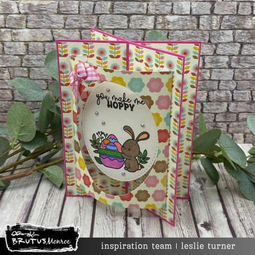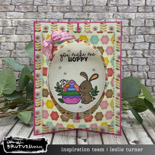 Hi friends, Happy Friday! Aren’t Fridays always happy?! I believe they are even when you’re retired… I always feel like I can freely do my own thing over the weekend with no interruptions from having to travel to doctor appointments! I’m delighted to share a Brutus Monroe DT inspiration project today featuring the uber adorable Make Me Hoppy stamps, Hip Hop Hooray stamps, and Bunny Friends stamps with chipboard. And of course I can’t leave out the gorgeous Spring Floral papers and Rouge cardstock! If you haven’t seen the March release yet, you really need to check it out – it’s chock full of Easter fun! I created a 3D Window Card which quickly rose to the top of my favorites list when I discovered it early last year on Lisa Curcio’s blog. Despite it’s complex look, it is an easy one.