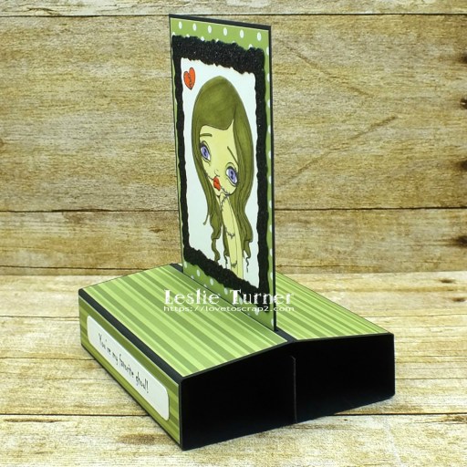 Hello again, friends! As promised, I’m back with another card I created for The Outlawz Challenges. I’m playing in the October Progressive/Freebie Challenge where Oddball Art Co. is the sponsor this month. We were given the adorable Sugar the Zombie digital image to play with and I have to say she’s almost too cute to spook, lol! I’m in another fun fold mode (am I ever not in a fun fold mode, lol?!) and created a free standing pop-up Halloween card in shades of green to match Sugar’s skin tone and hair, lol!